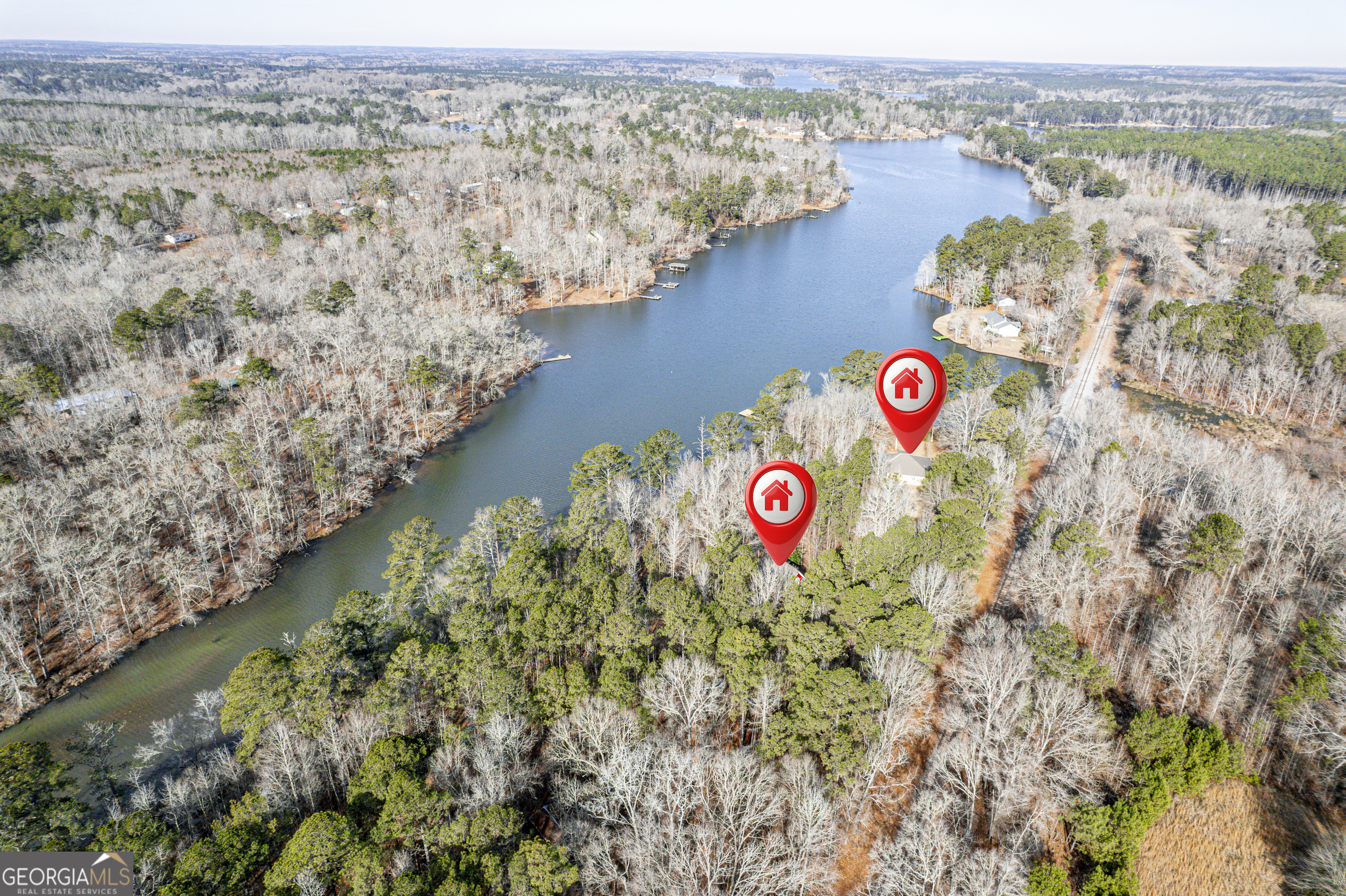 RARE LAKEFRONT OPPORTUNITY - TWO HOMES ON 18.34 WATERFRONT ACRES! A truly peaceful retreat on Lake Sinclairs' Golden Pond, this one-of-a-kind property offers 2 separate homes on 18.34 acres of waterfront property, creating a rare blend of privacy, flexibility, and expansive shoreline that is nearly impossible to find. The property boasts over 1000 ft of shoreline, including 500+ ft of seawall, a boat ramp, and a newly refinished dock with approximately 4 ft of water depth at the dock. The expansive acreage provides a natural buffer for privacy while capturing wide tranquil water views. Golden Pond is a quieter, more secluded setting perfect for kayaking, paddleboarding, fishing, and simply unwinding away from the busier main lake. The primary home is a beautiful well-maintained 2BR/2BA ranch featuring a cozy fireplace, spacious primary suite, bright kitchen,separate dining room, and large screened porch with a gorgeous lake view - an ideal spot for morning coffee or evening sunsets. The secondary home is a charming 2BR/1.5BA two-story cabin with upgraded countertops, trim, stone exterior accents, screened porch, and features a pool table and a hot tub for relaxing with lake views! Additional features include a storage building, pole barn, large yard for entertaining, wooded areas for roaming, and established lake improvements. Ideal for multi-generational living, guest accommodations, or income potential. A unique opportunity offering acreage, shoreline, and serenity in one exceptional lakefront setting. Schedule your private tour and experience it for yourself!