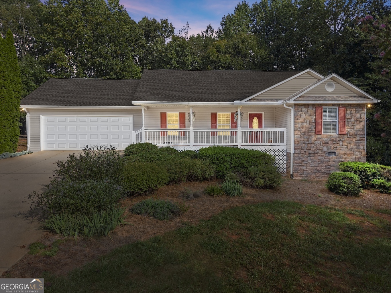 Take advantage of a 5.5% or lower first-year interest rate with our approved lender on this charming ranch home near the beautiful North Georgia Mountains. Featuring 3 bedrooms, 2 baths, plus a versatile flex room perfect for an office, library, or 4th bedroom, this home offers a spacious open layout with a kitchen that includes an eat-at breakfast bar and views to the family room and breakfast room. The master suite boasts a tray ceiling, large walk-in closet, dual vanity, walk-in shower, and soaking tub, while hardwood floors flow throughout the home. Enjoy relaxing on the screened-in back porch overlooking the private wooded backyard, making this home the perfect blend of comfort and natural beauty.